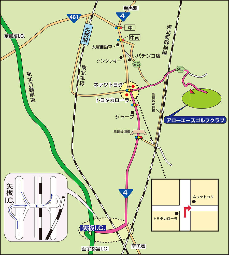 矢板I.Cを出て、国道4号線を黒磯・大田原方面へ降りる(矢板市街方面とは別)