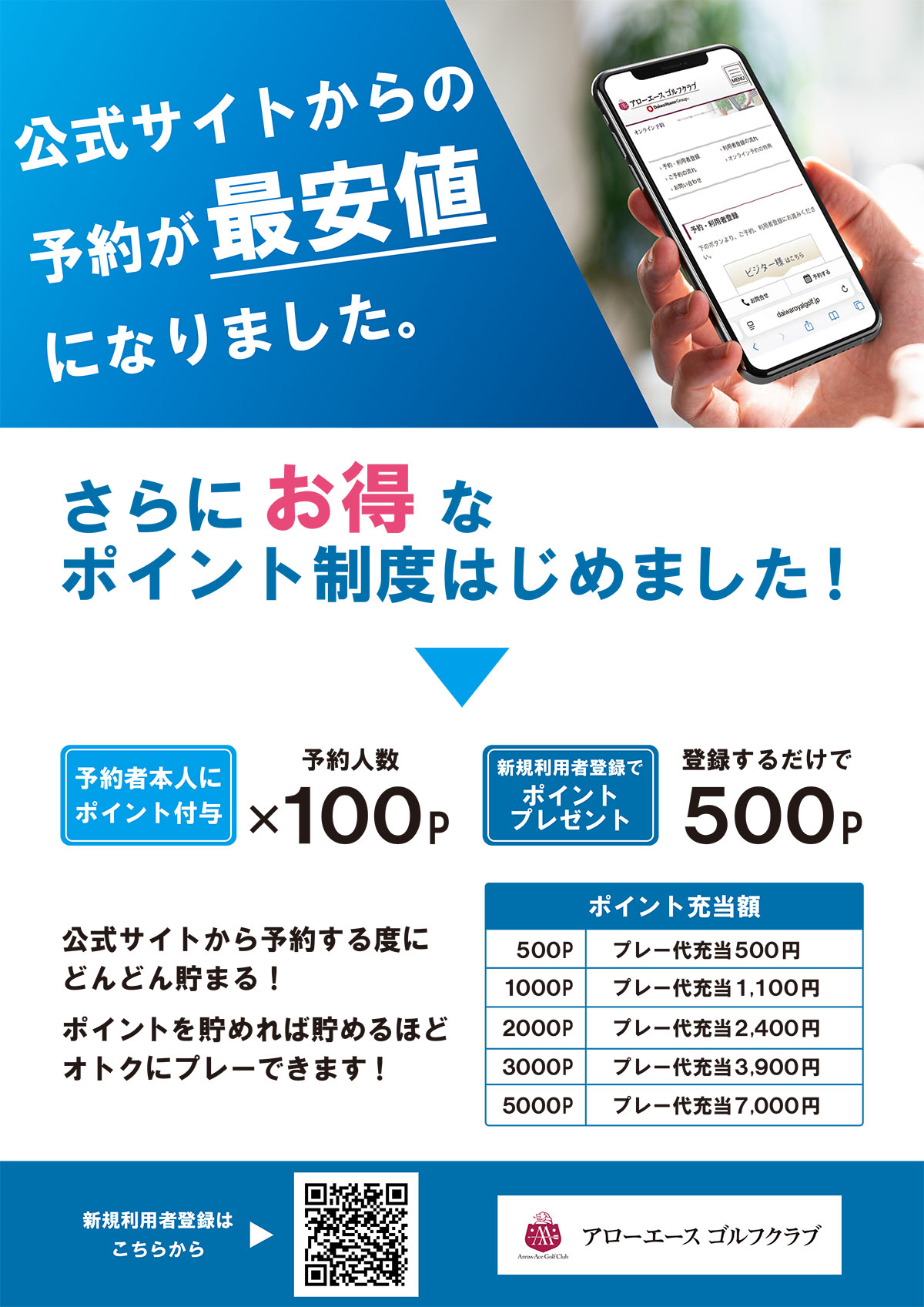 - ※プレー代に含まれる税金、振興金等はポイント数が上回っても現地払いとなります。