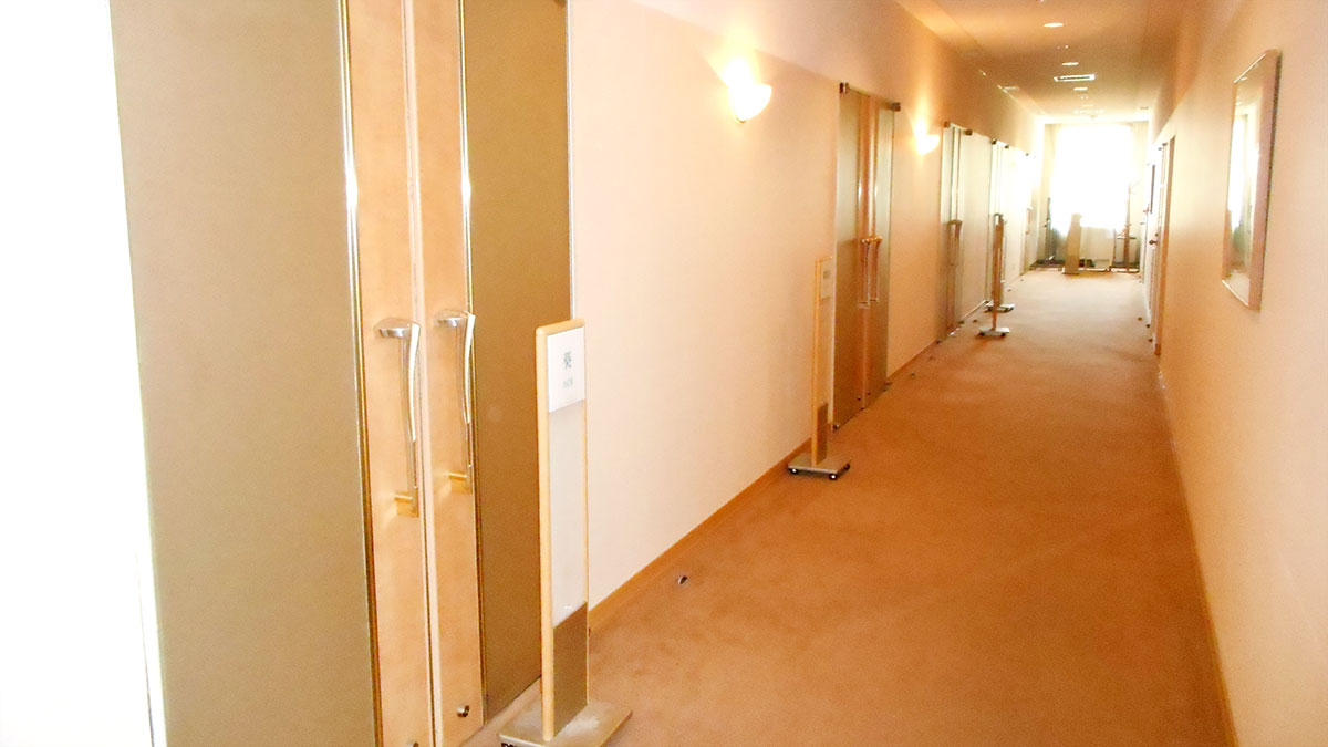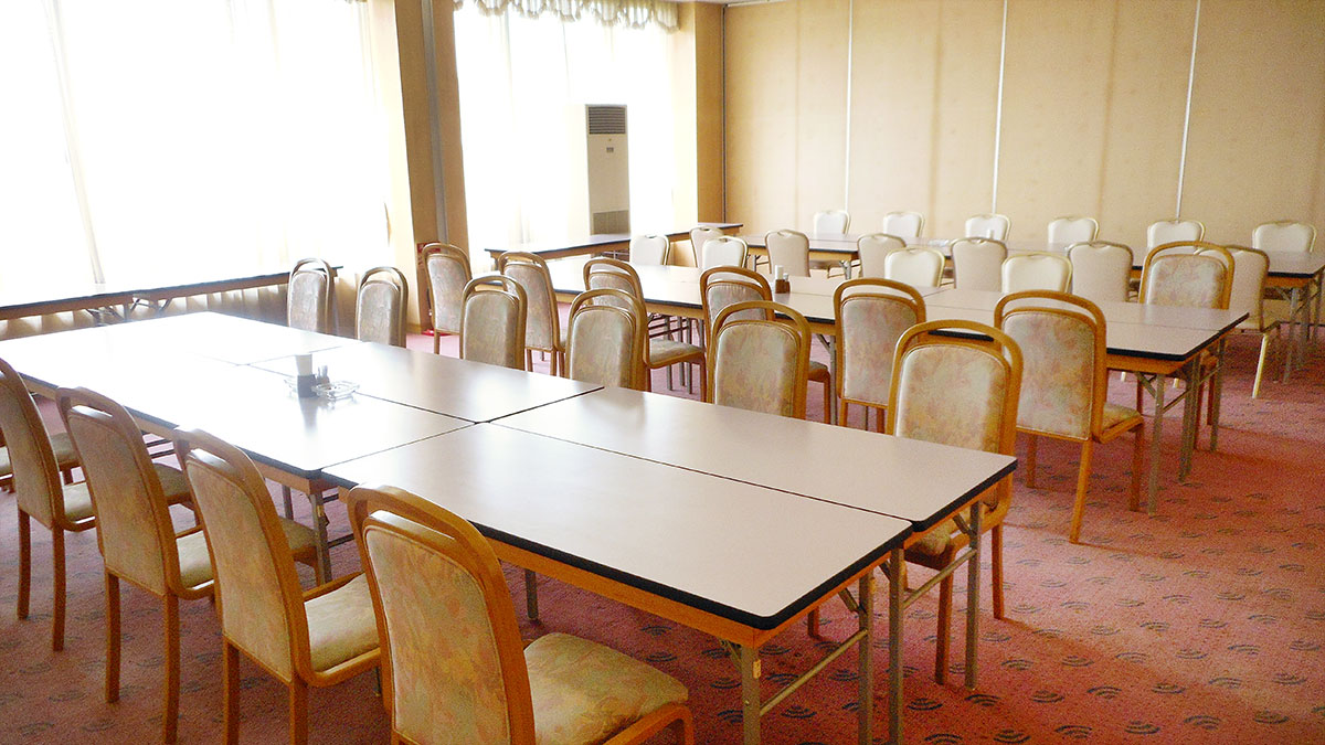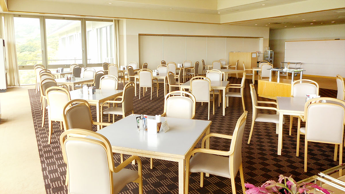 全席80席。立席ビュッフェスタイルのパーティーなら120名が可能。 レストランとのパーティションを開けて,レストラン側席の併用も可能。 左写真の空間をパーティションで区切り、16名席が5室できます。